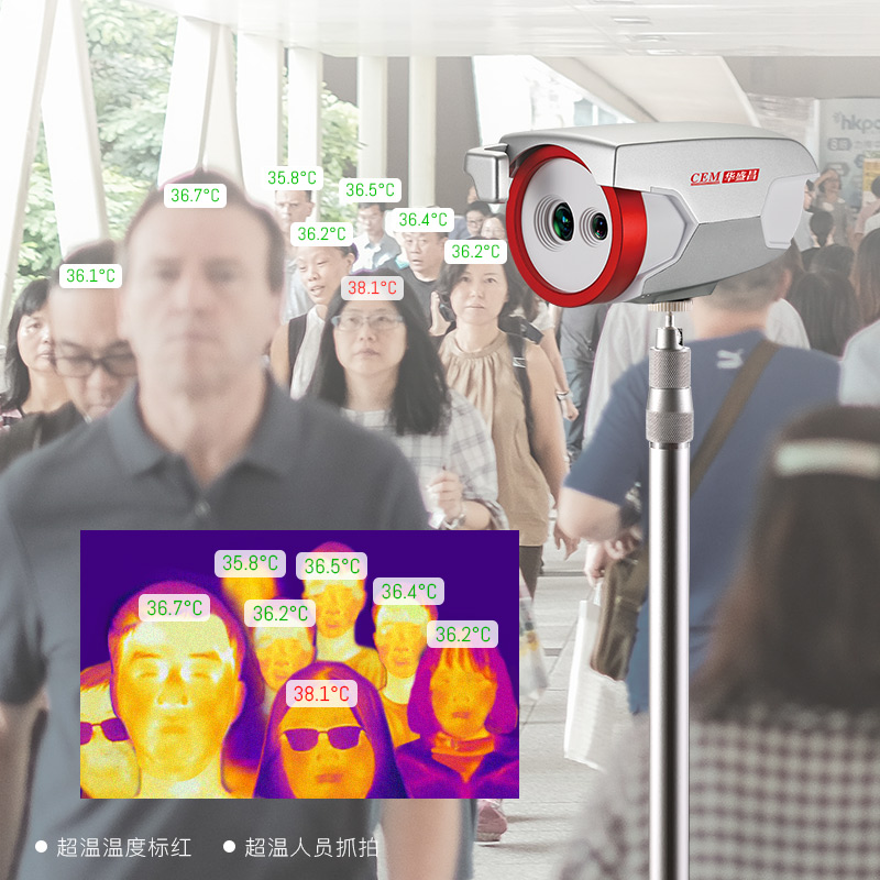 熱成像篩查原理1.紅外輻射原理 自然界中一切溫度高于絕對零度(負(fù)273.15攝氏度)的物體都會輻射紅外能量,熱成像儀只是被動接受人體輻射出來的紅外能量,對人體和環(huán)境是沒有任何危害的。 2.紅外熱成像儀原理 紅外熱像儀將紅外熱輻射轉(zhuǎn)換成電信號,經(jīng)過系統(tǒng)電路的處理,在顯示器上通過肉眼可見的RGB顏色顯示出來,實質(zhì)上是將不可見的紅外輻射轉(zhuǎn)換為可見的熱圖像,并配以溫度顯示。 3.熱成像篩查的優(yōu)勢與注意事項 熱成像可以對其視場角范圍內(nèi)的多目標(biāo)同時進行體溫測量,減少人員接觸,安全效率高,但它的精度受到外界環(huán)境影響,所以應(yīng)用時應(yīng)該保持環(huán)境穩(wěn)定。 4.人體溫度篩查原理 篩查系統(tǒng)首先通過人臉檢測技術(shù),獲取人臉的區(qū)域。然后通過熱成像獲取人臉區(qū)域額頭溫度。這樣可以將人臉和溫度關(guān)聯(lián)起來。 需要注意的是: 1)人的體內(nèi)溫度通常在35°℃~37°C范圍內(nèi)波動,受到環(huán)境,運動狀態(tài)等影響會出現(xiàn)體溫的波動,需要被測人員處于穩(wěn)定的環(huán)境中,避免劇烈運動。 2)由于是采集人臉額頭,所以被測人員不要遮擋額頭,戴口罩不影響測量。