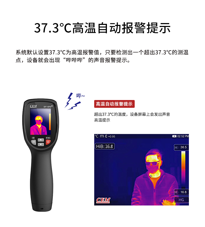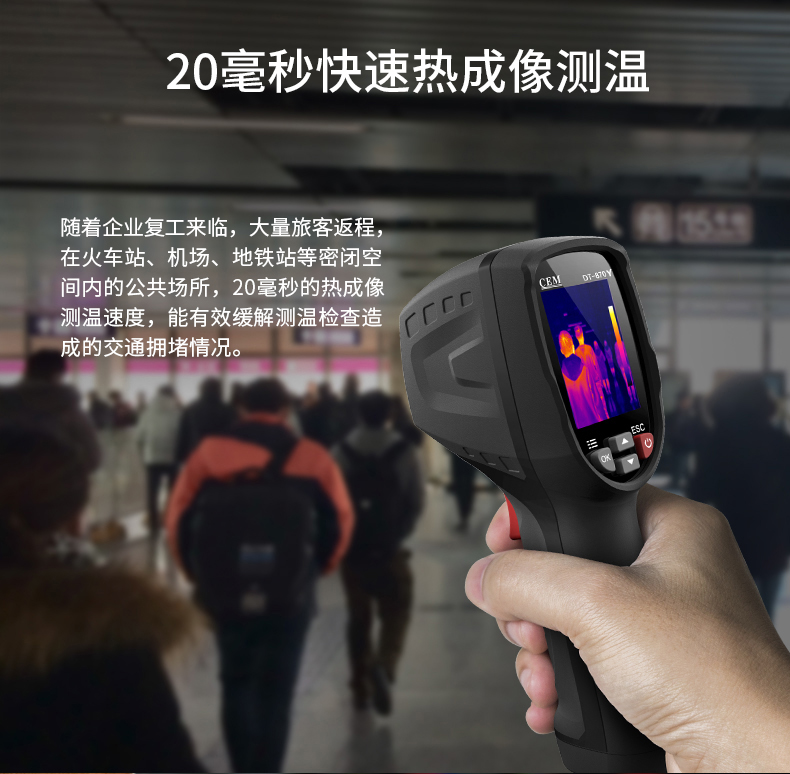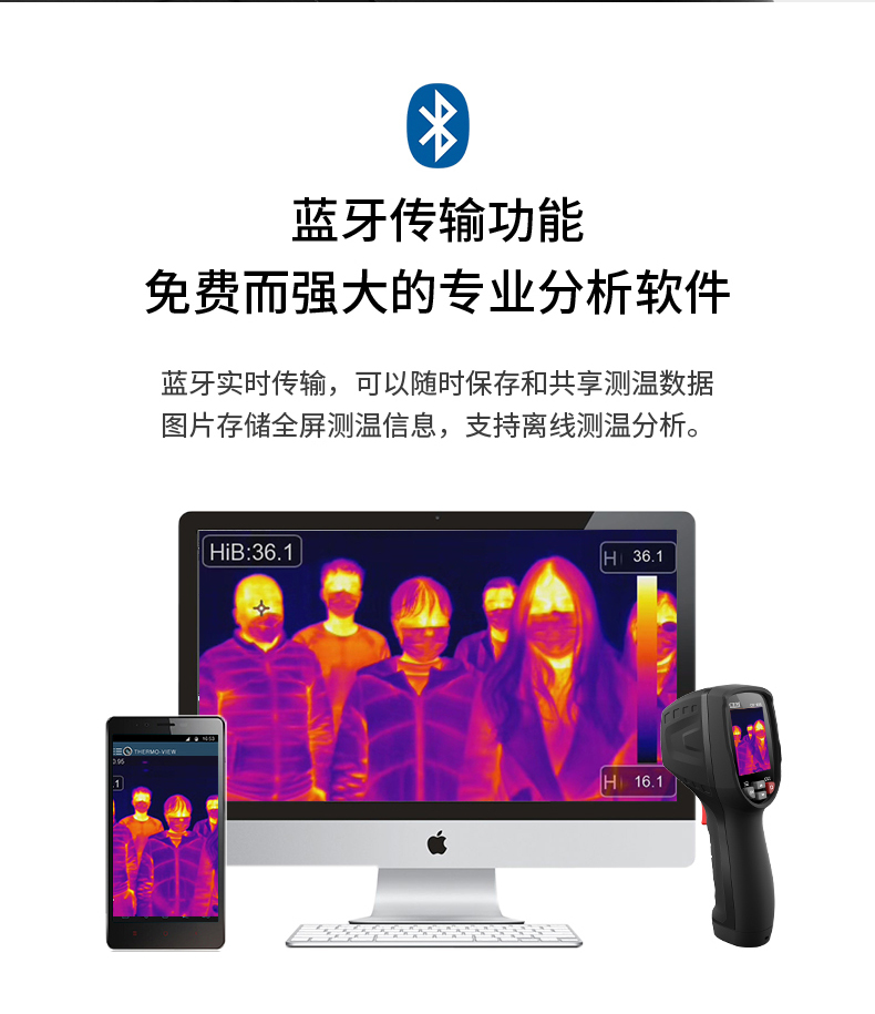 標配鏡頭7.5mm,分辨率80×80,IFOV:4.53mard,視場角21×21°,熱靈敏度NETD<0.1℃,圖像幀頻50Hz,溫度范圍(-20-380),可見光分辨率320×240像素