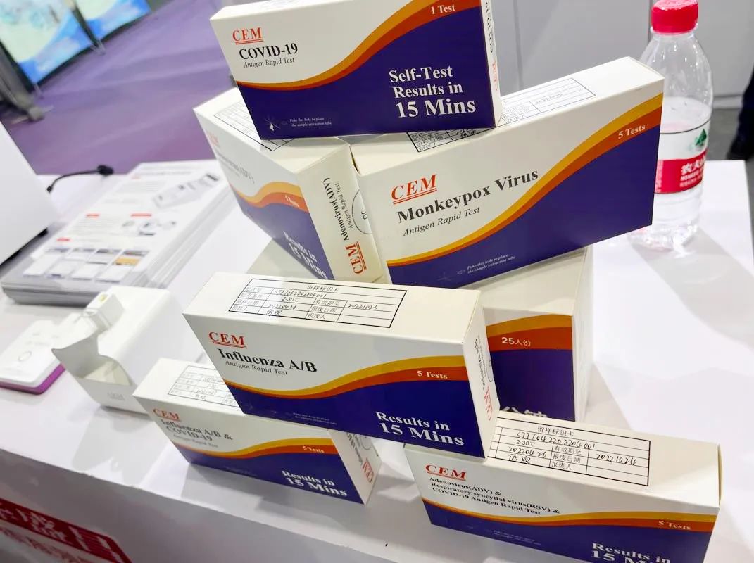 當(dāng)前,新冠疫情仍在世界各地不斷反復(fù),與之相關(guān)的檢測產(chǎn)品依舊是展會上各路IVD廠商關(guān)注的焦點。華盛昌推出的新冠膠體金抗原檢測試劑盒,通過歐盟自測CE認(rèn)證,嚴(yán)格控制產(chǎn)品成本。