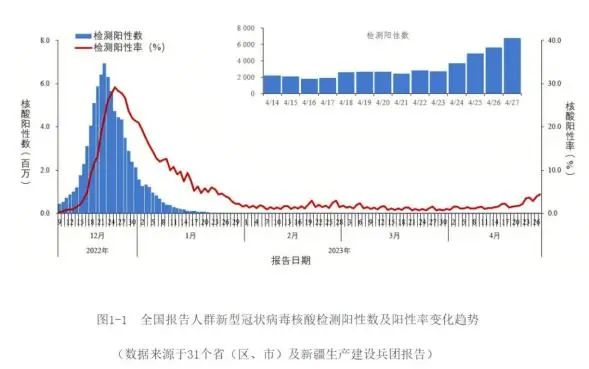 從中國疾病預(yù)防控制中心發(fā)布的數(shù)據(jù)來看,目前陽性案例確實(shí)在增加,但總數(shù)仍較少。國內(nèi)12月-1月感染高峰之后,新冠病毒并沒有完全消失,而是維持著低于1%的檢測陽性率。而近期,新冠陽性人數(shù)和檢測陽性率都有上升趨勢,4月27日檢測陽性率為4.4%。