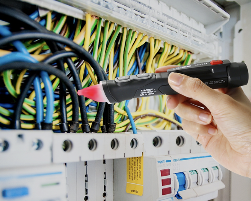 當(dāng)檢測(cè)到附近交流電壓時(shí),紅色的LED指示燈將閃爍并發(fā)出警報(bào)聲,LED閃爍和蜂鳴報(bào)警隨電壓強(qiáng)弱而變化,可以幫助操作人員更加準(zhǔn)確地判斷電路的狀態(tài)。自帶LED照明燈可以在光線較差的地方輔助檢查工作。