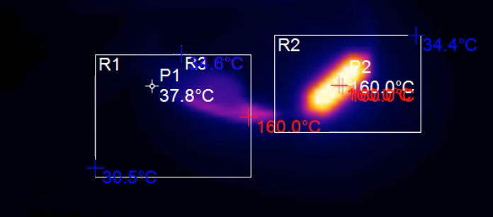 ?。?60°高溫保險(xiǎn)熔斷瞬間熱像圖)