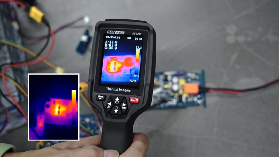 保險(xiǎn)用于保護(hù)電路板,當(dāng)電流過大時,保險(xiǎn)會熔斷以保護(hù)電路。在測試中,我們需要及時觀察保險(xiǎn)的溫度變化,而熔斷過程只有300ms左右,很難通過拍照捕捉到。